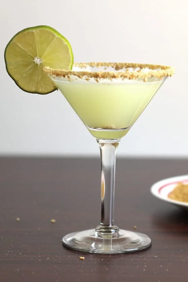 - Dip your martini glass rim in water, then dip in a plate of crushed graham crackers.